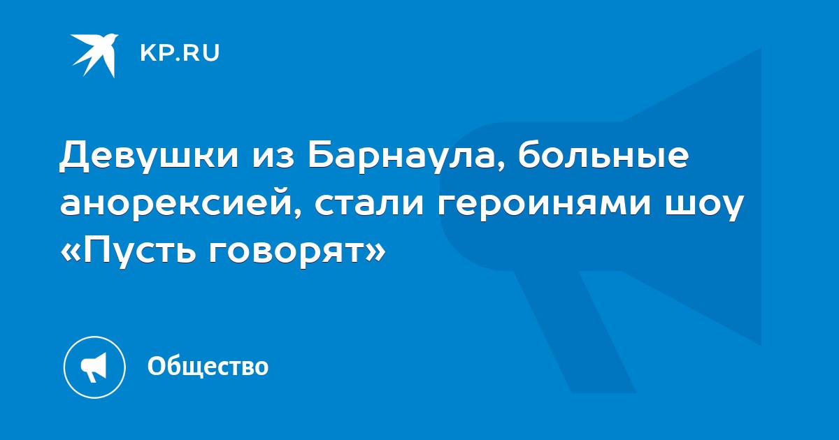 Очередной выпуск ток-шоу «Пусть говорят» на Первом канале вновь посвятили теме экстремального похудения и больных анорексией. Героинями стали две девушки из Барнаула.