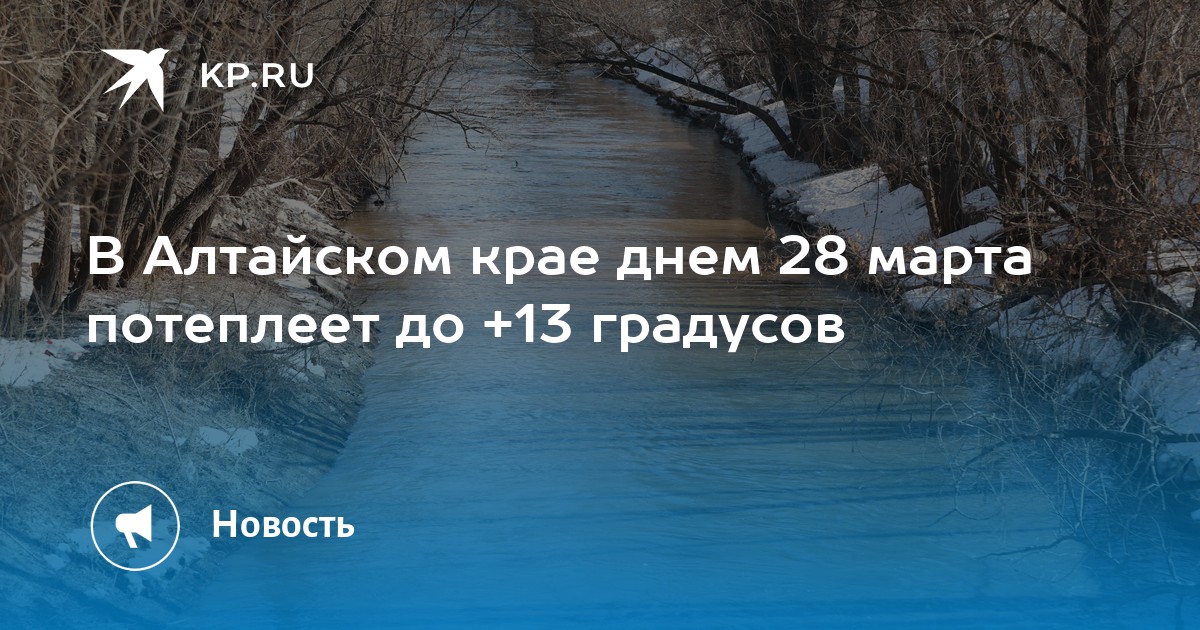 В Алтайском крае днем 28 марта ожидается высокая температура воздуха, с активным снеготаянием. В предгорьях потеплеет до +13. Об этом сообщает региональный ЦГМС.
